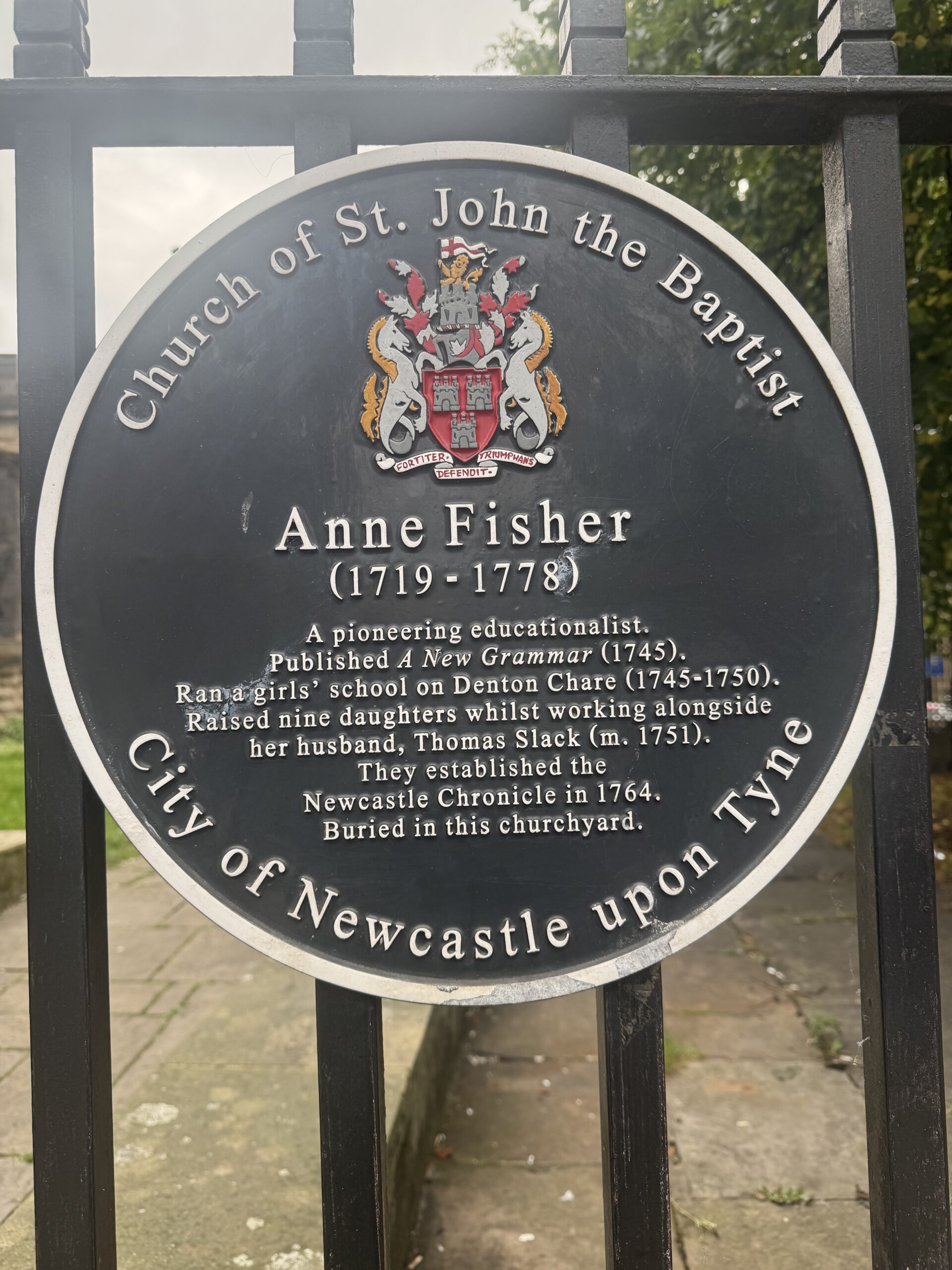 Prior to her marriage Ann established an evening school for young women who wanted to improve their literacy skills. She published “A New Grammar and Spelling Book” establishing her as the first female grammarian in modern English. There is a Plaque on the gate of St John’s Churchyard where they are buried.